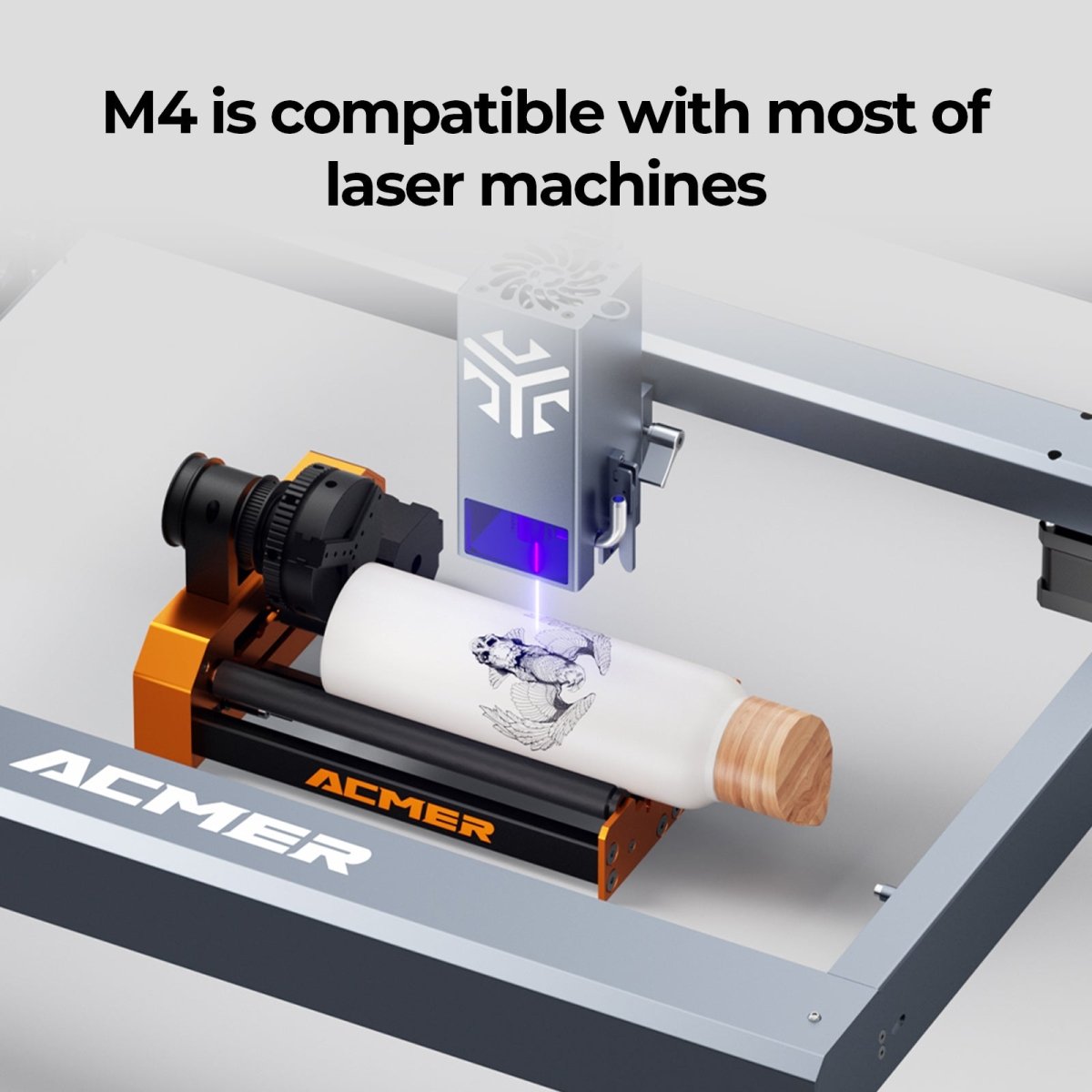 M4 is also compatible with laserGRBL and lightburn. You can use the software to draw or file to engrave wonderful patterns on the cylinder.