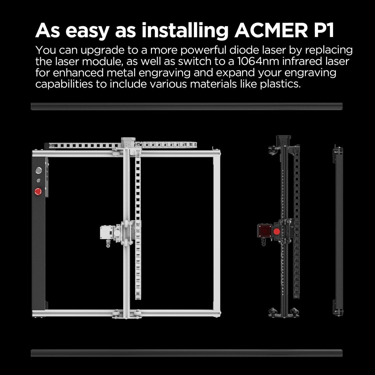 By changing the Y-axis of the machine, the engraving area can be doubled. The working area of ACMER P1 10w increases from 400*410mm to 400mm*800mm, and the working area of ACMER P1 20w increases from 390*385mm to 390*775mm.